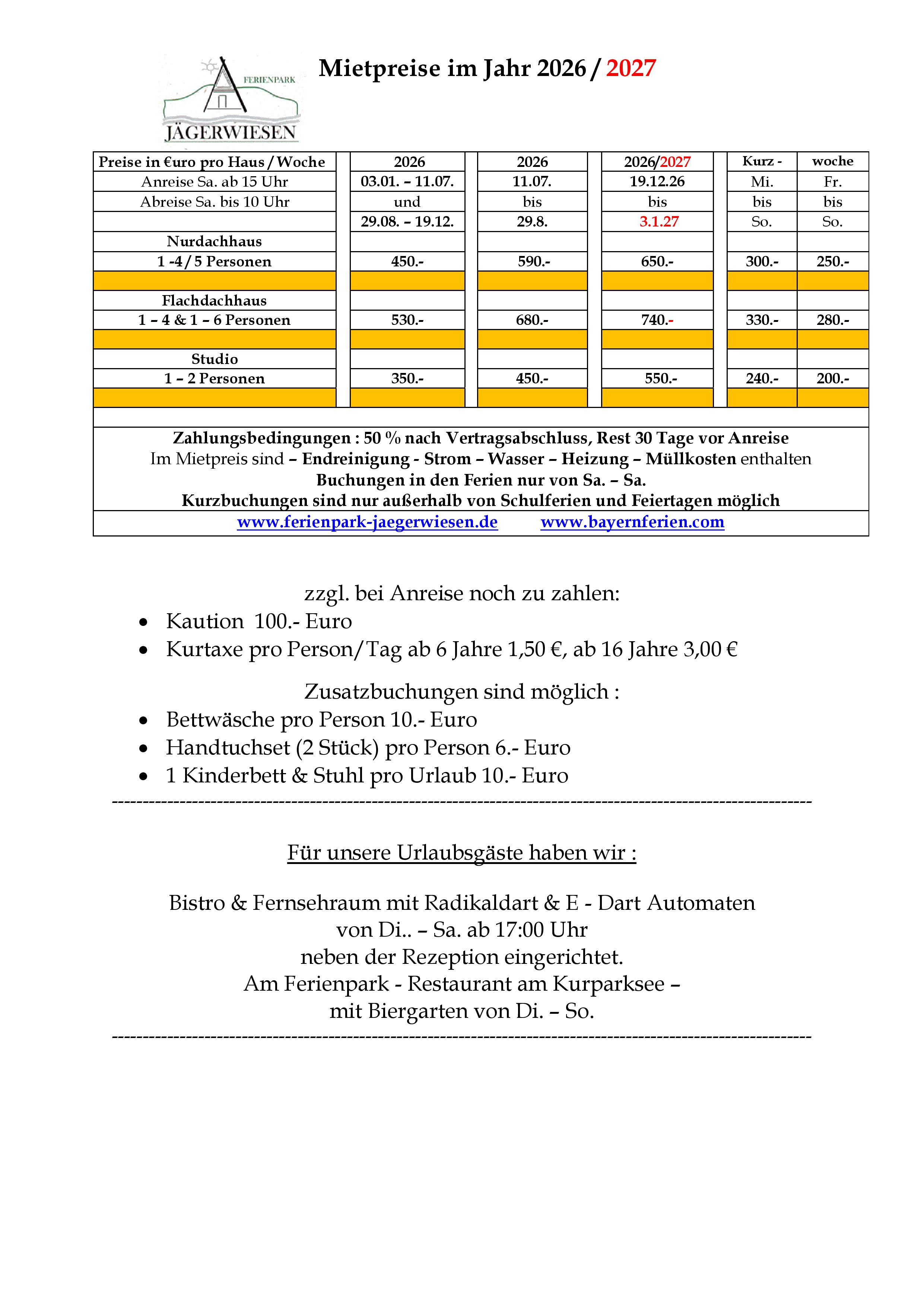 | © Copyright Peter Weinhold Ferienpark Jägerwiesen | Letzte Änderung: 04.12.2025